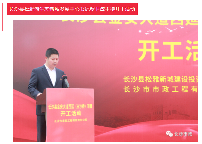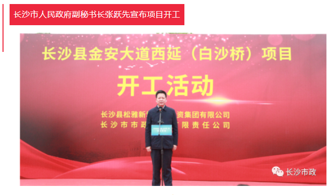 4月19日上午,長沙縣金安大道(含白沙河橋)西延項(xiàng)目開工活動隆重舉行。長沙市人民政府副秘書長張躍先,長沙縣委副書記、縣長、松雅湖生態(tài)新城建設(shè)指揮部指揮長陳永高,松雅湖生態(tài)新城建設(shè)指揮部常務(wù)副指揮長曹偉興,長沙市市政工程有限責(zé)任公司董事長陳懷柏出席活動。長沙縣松雅湖生態(tài)新城發(fā)展中心書記羅衛(wèi)滋主持開工活動。